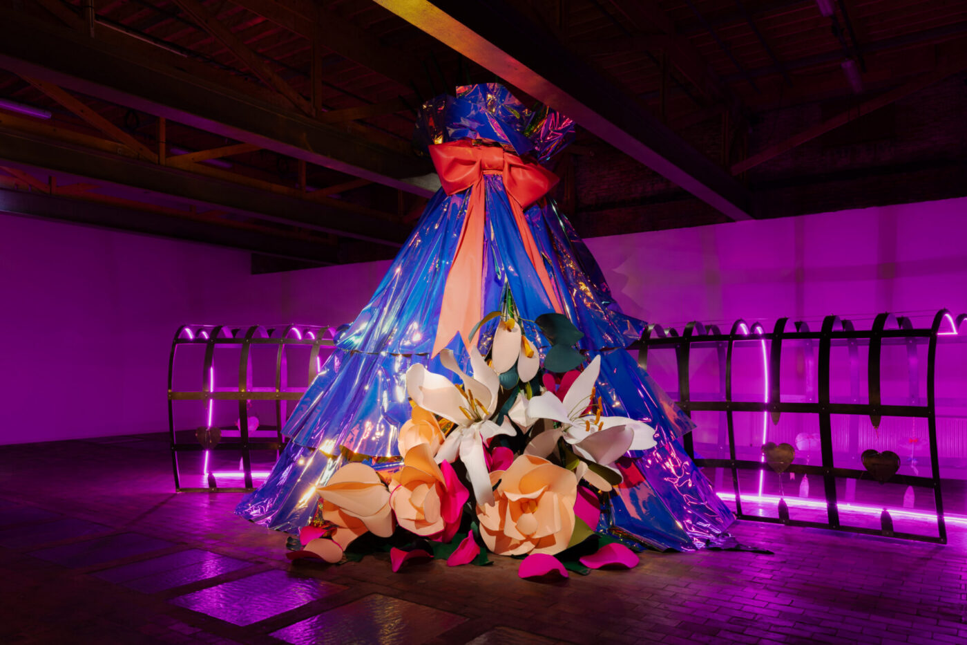 Unfolding as a world of symbolic reversals and ritual transformations, Dress to Kill immerses viewers in a lush scenography of flowers, fabrics, bodies, and voices. The result is a feminist imaginary where vulnerability and strength, collectivity and difference, are in constant interplay.